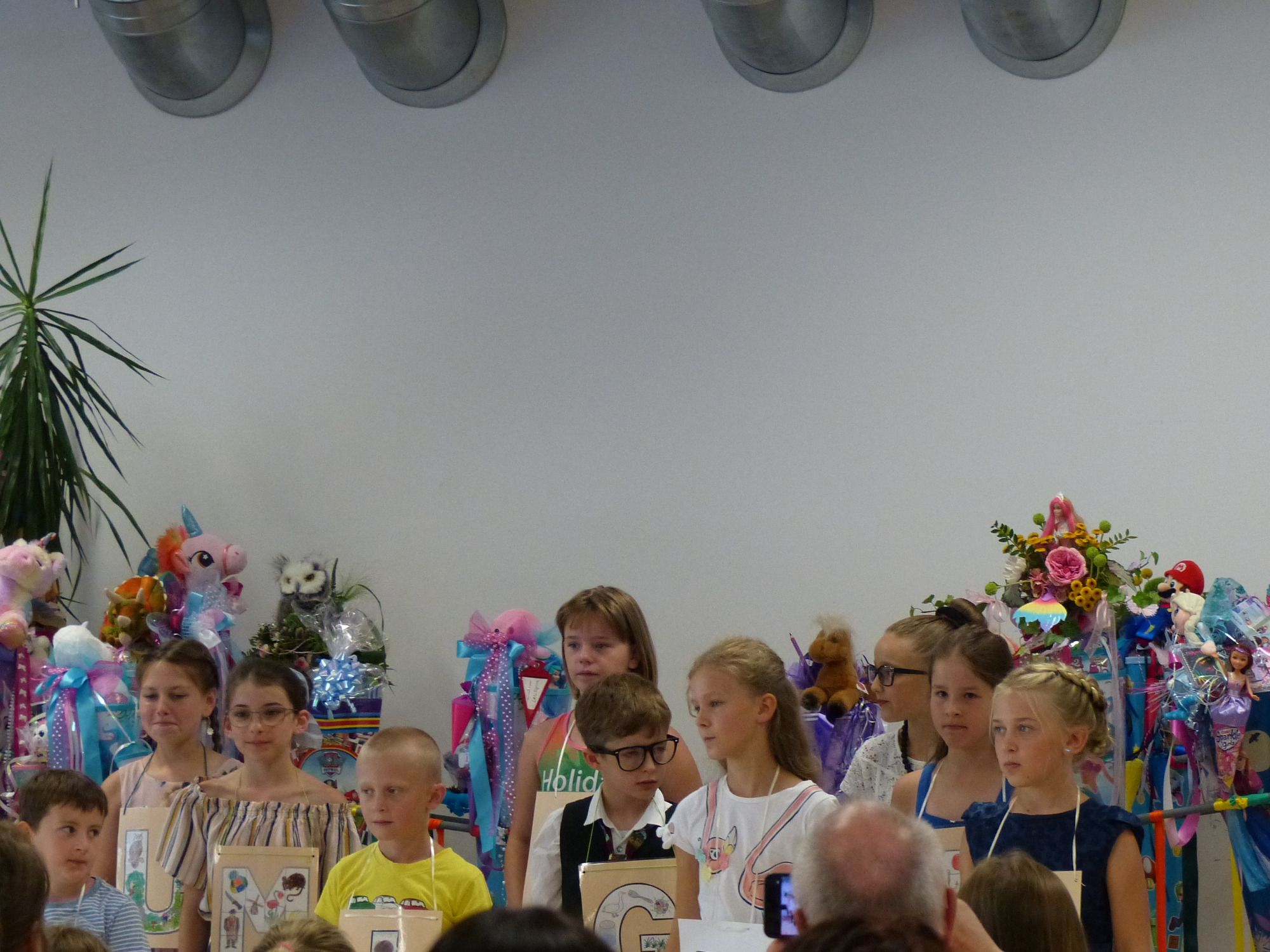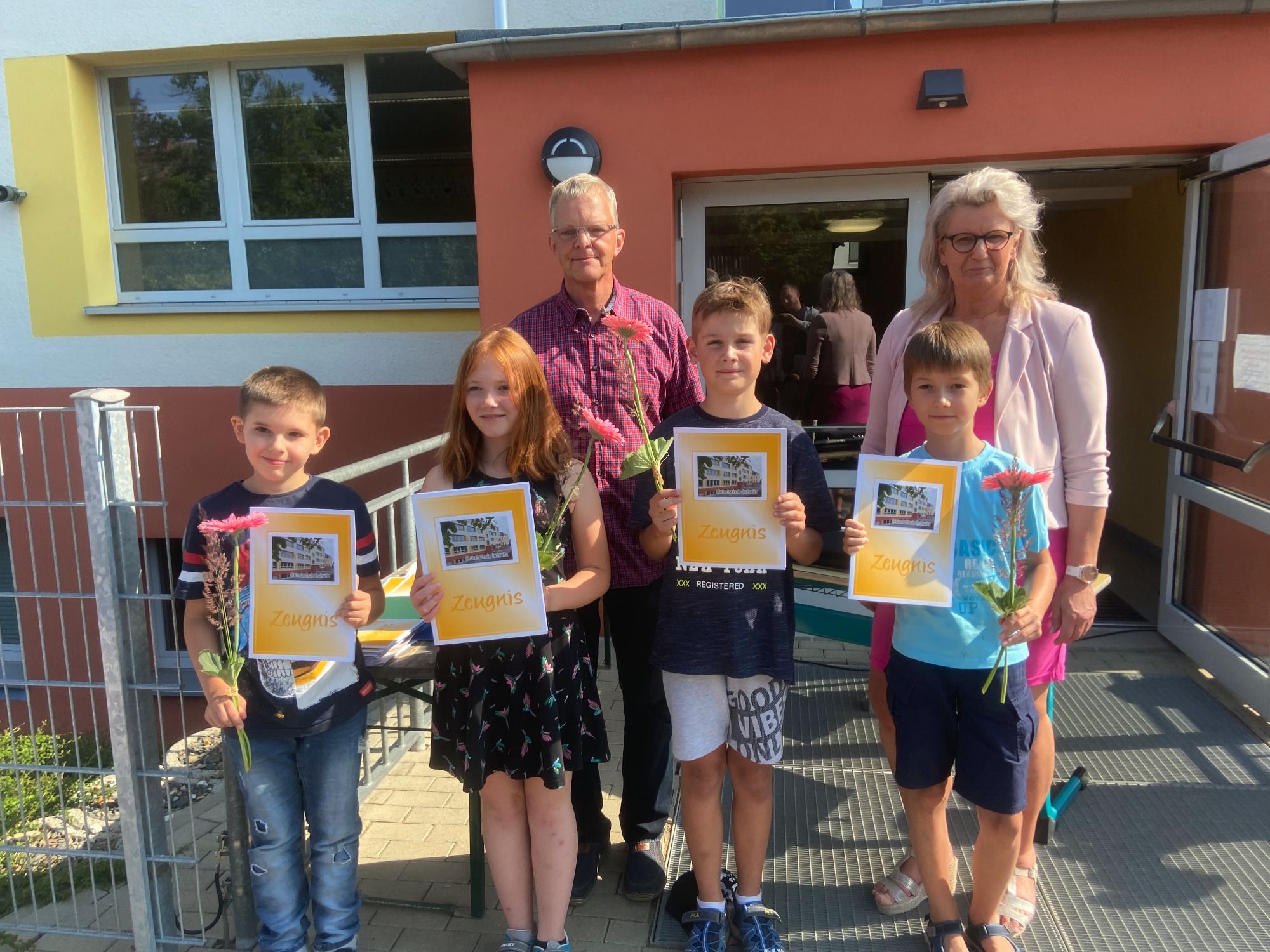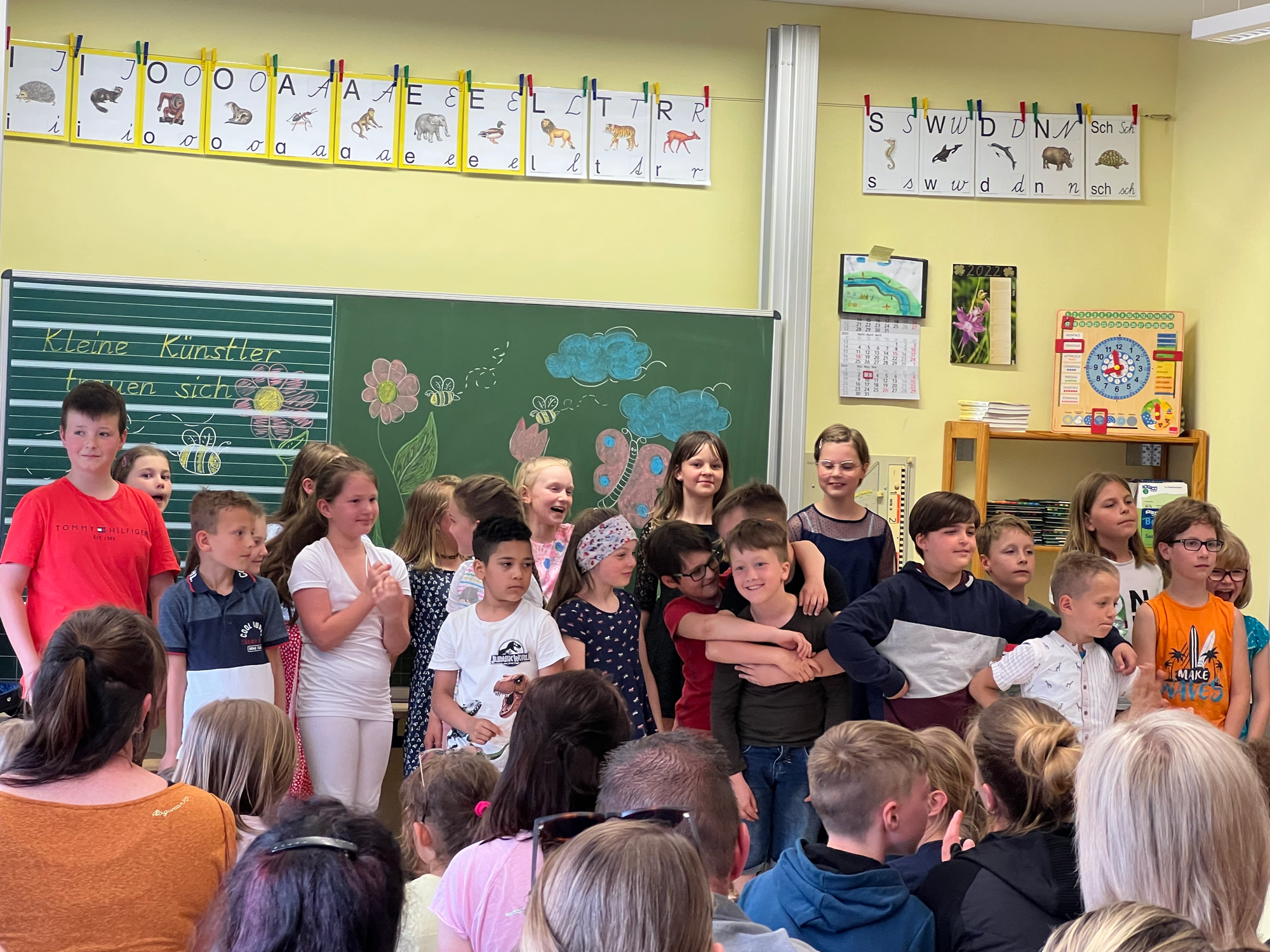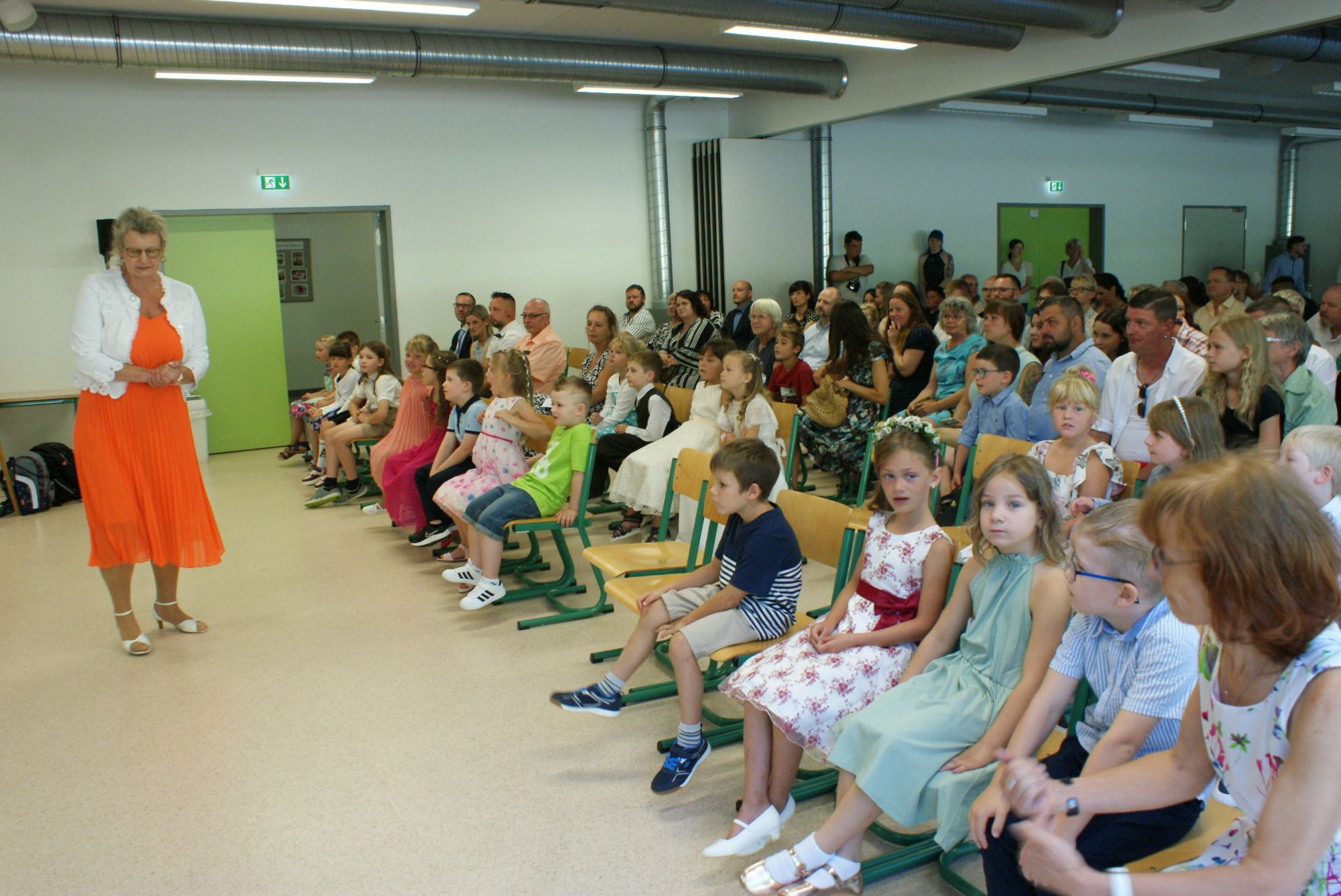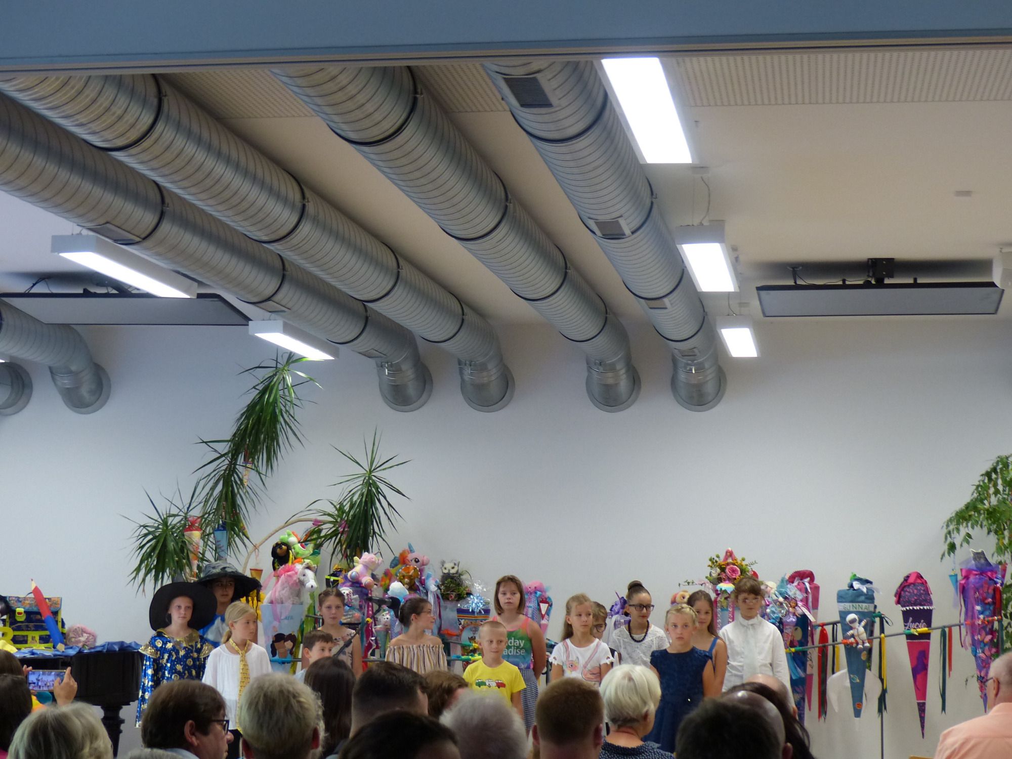 Schüler der jetzigen 4. Klasse und der ehemaligen 4. Klasse erfreuten sowohl unsere neuen Schüler als auch alle Angehörigen mit einem sehr schönen Kulturprogramm.