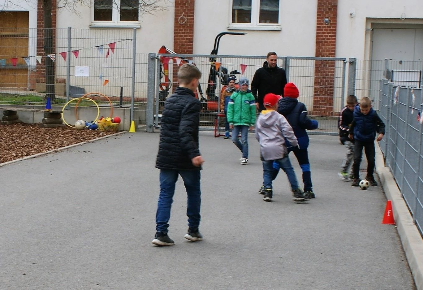 Am Montag machten unsere jüngsten Fußballer aus den Klassen 1 und 2 den Anfang. Zum ersten Mal in der Irchwitzer „Fußballgeschichte“ spielten mit A. und Nele 2 Mädchen für unsere Schule.