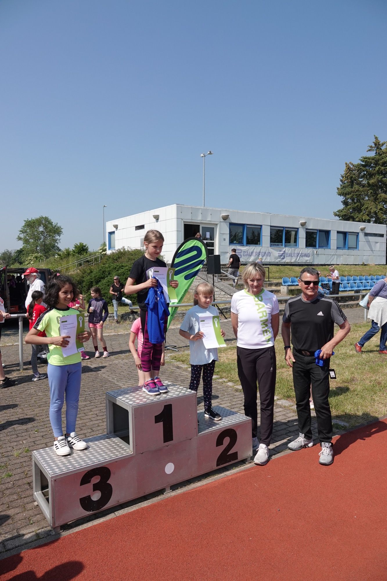 In 24 Einzelwettkämpfen (4 Altersklassen, jeweils getrennt nach Mädchen und Jungen: 50m- Sprint, Weitsprung, Ballweitwurf) und dem 8x 50m Staffellauf kämpften unsere Kinder fantastisch!!! So konnten wir am Ende 9 Treppchenplätze und weitere tolle Platzierungen bejubeln.