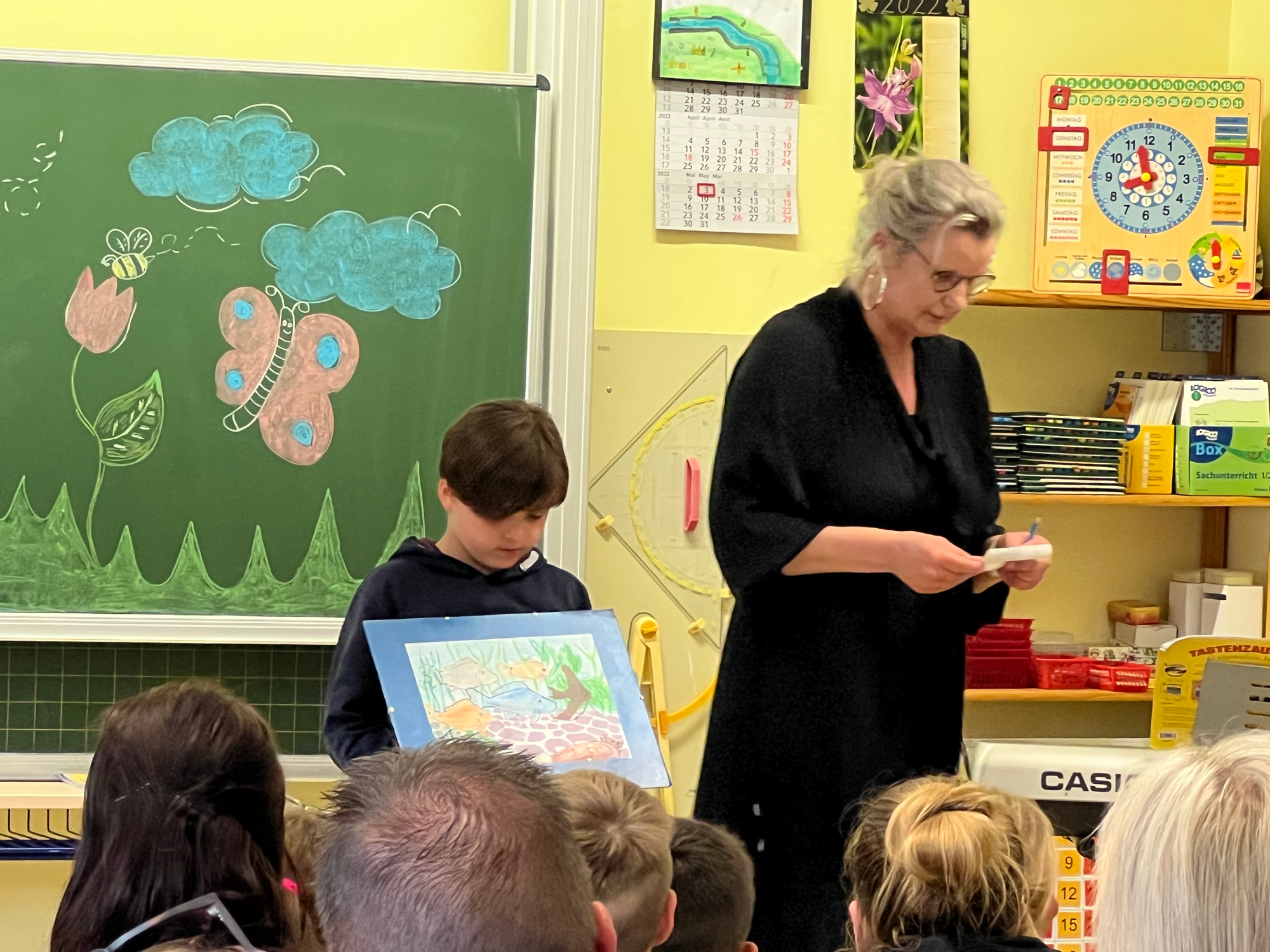Frau Kappert und Frau Vogl wollten natürlich auch wissen, was die Kids über die Tiere und die verschiedenen Vögel, die im Wald „wohnen“ schon gelernt haben. Sie waren erstaunt, denn die Kids waren bestens informiert.